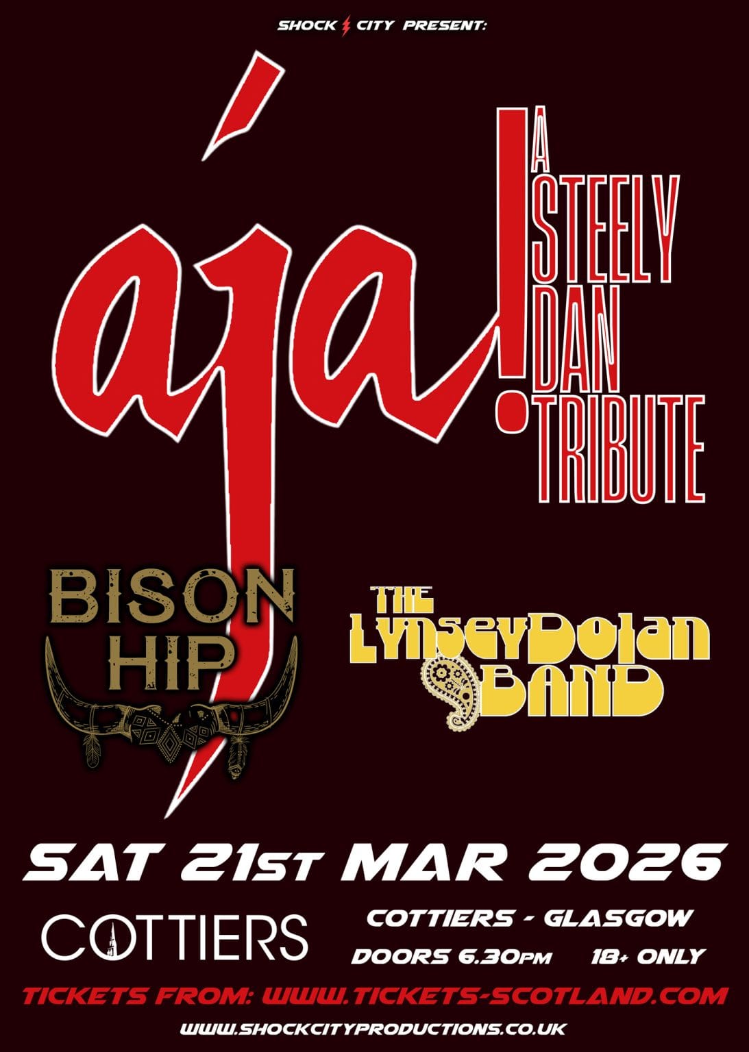 Aja! is an 8-piece Scottish band dedicated to performing the music of Steely Dan with the energy, precision, and authenticity it deserves. The collective brings together professional musicians from across Scotland- all at the top of their game. The lineup features a three-part vocal team, horn section, and full rhythm section. Between them, the members have toured internationally, played major festivals and iconic venues, and shared stages and studios with legendary artists across genres. The show is high-energy and meticulously crafted, replicating Steely Dan’s arrangements with the level of detail and musicality fans expect, while leaving room for the kind of improvisation that brings the music to life on stage. Aja! A Steely Dan Tribute performs a mix of hits, deep cuts, and fan favourites from across the band’s discography. Steely Dan were known as the perfect musical antiheroes of the 1970s, blending jazz, rock, Latin, funk, R&B and blues with razor-sharp lyrics and obsessive studio perfectionism. Aja! A Steely Dan Tribute exists to honour that legacy- approaching the music with the same respect for detail and performance that Walter Becker and Donald Fagen demanded, treating every arrangement with care and accuracy. Aja! had a successful run 2025 Edinburgh Fringe Festival to instant acclaim, with a run of sold-out shows and glowing praise from audiences. This will be the band’s debut appearance in Glasgow.